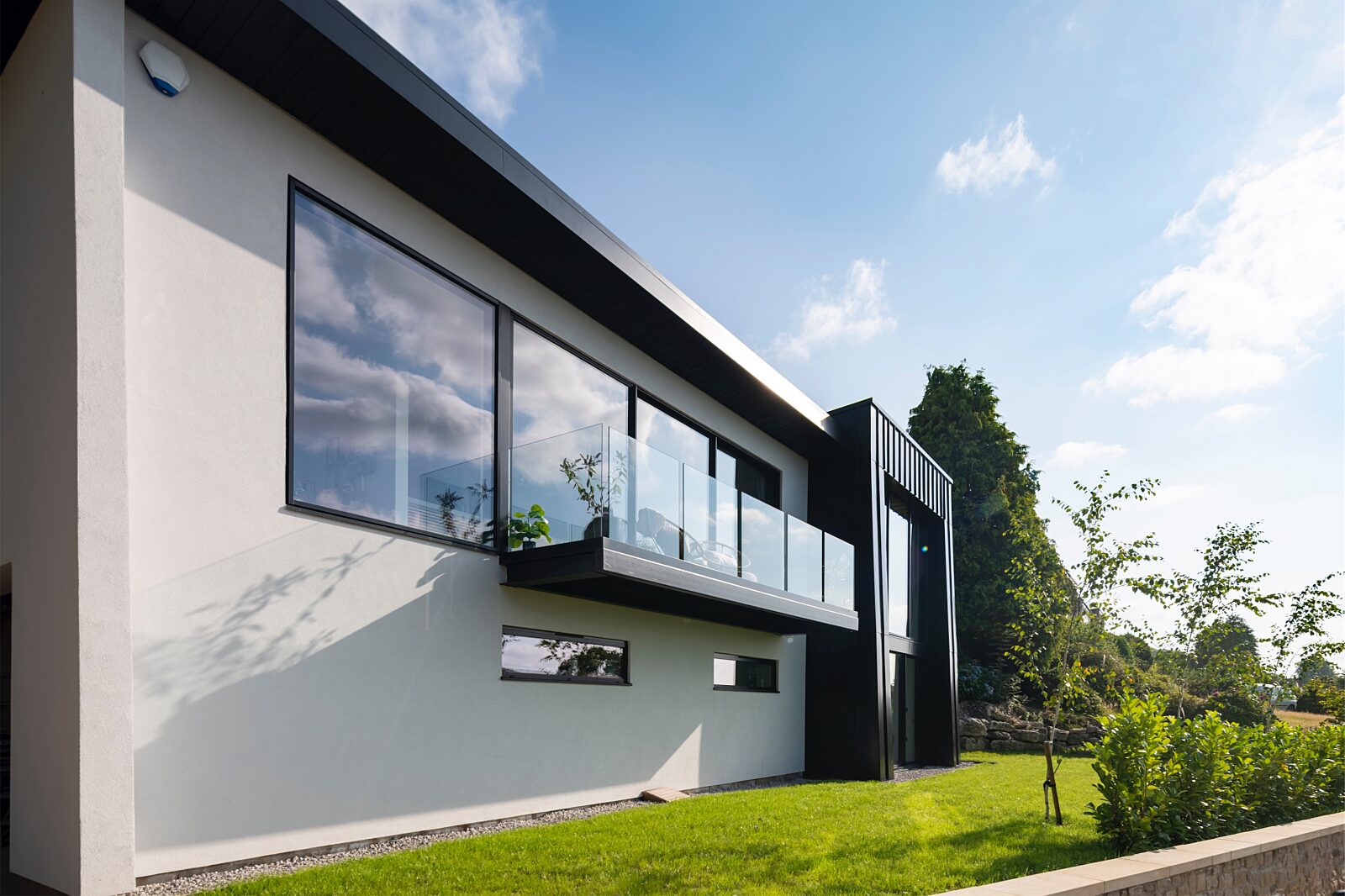This iconic house, which attracts local visitors who have watched its transformation, has a mono pitched roof with single ply EPDM and benefits from structural double-glazed windows that flood the house with natural light and maximises the stunning Lancashire views.