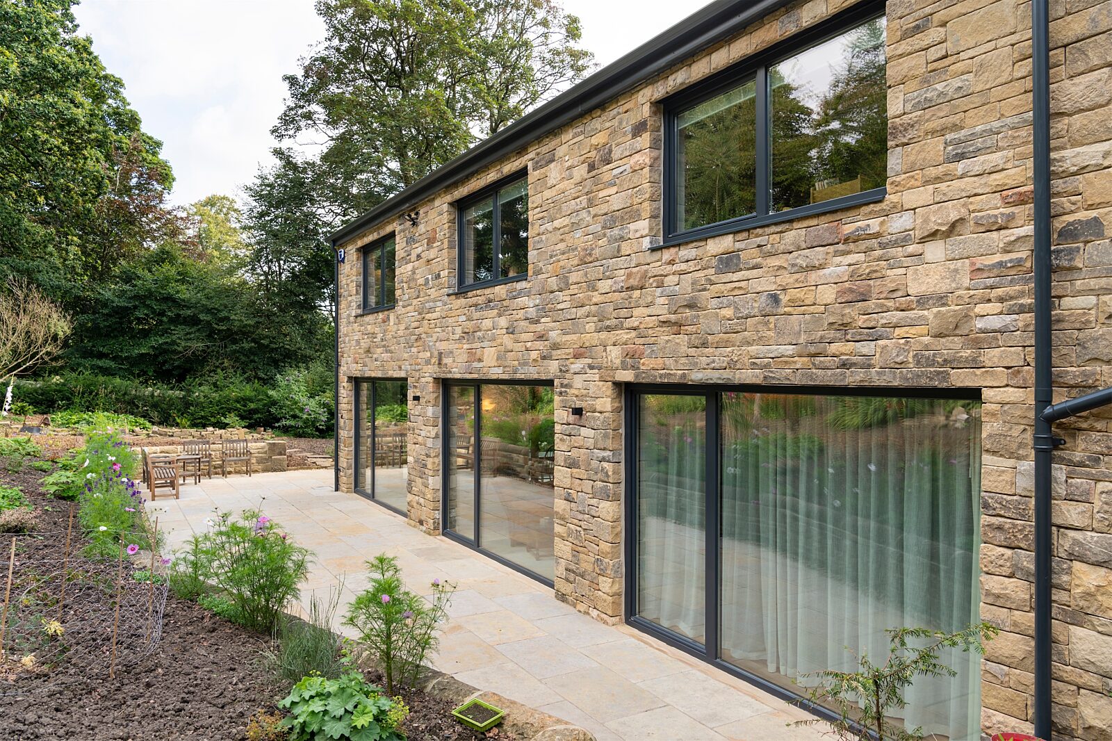 As far as possible, the client wanted to use local suppliers to reduce the carbon footprint of the build. Fortunately, SIPS@Clays factory is less than 3 miles from Raikes Corner and the client used local trades/craftsmen and materials, including local recycled stone for the cladding. It was important to minimise the environmental impact of the project.